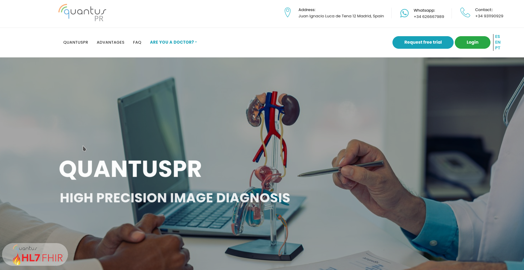 quantusPR® has been developed by Transmural Biotech S.L., a company focused on the development of medical technologies based on image processing techniques. Transmural BiotechS.L is an ISO 13485 certified company. For more information visit www.transmuralbiotech.com or contact us at info@transmuralbiotech.com