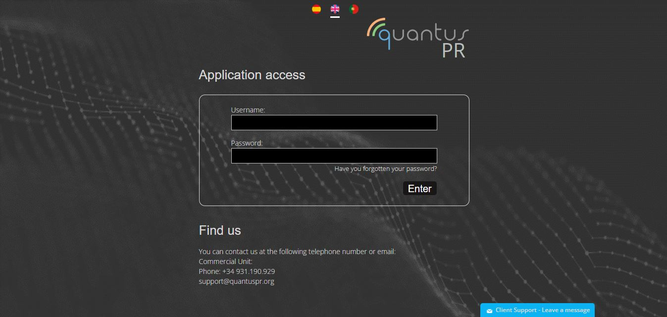 Then enter your account information and click the ENTER button. If you do not have these login details please contact quantuspr customer service via email at support@quantuspr.org .