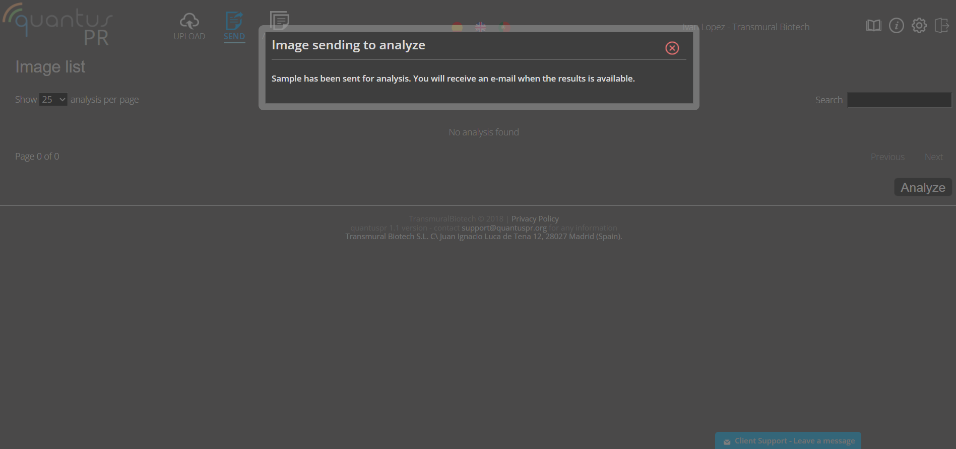 2. Log in to your quantuspr account and click "ANALYSIS" button, then search for the specific analysis and in the PDF column you will have the report available.